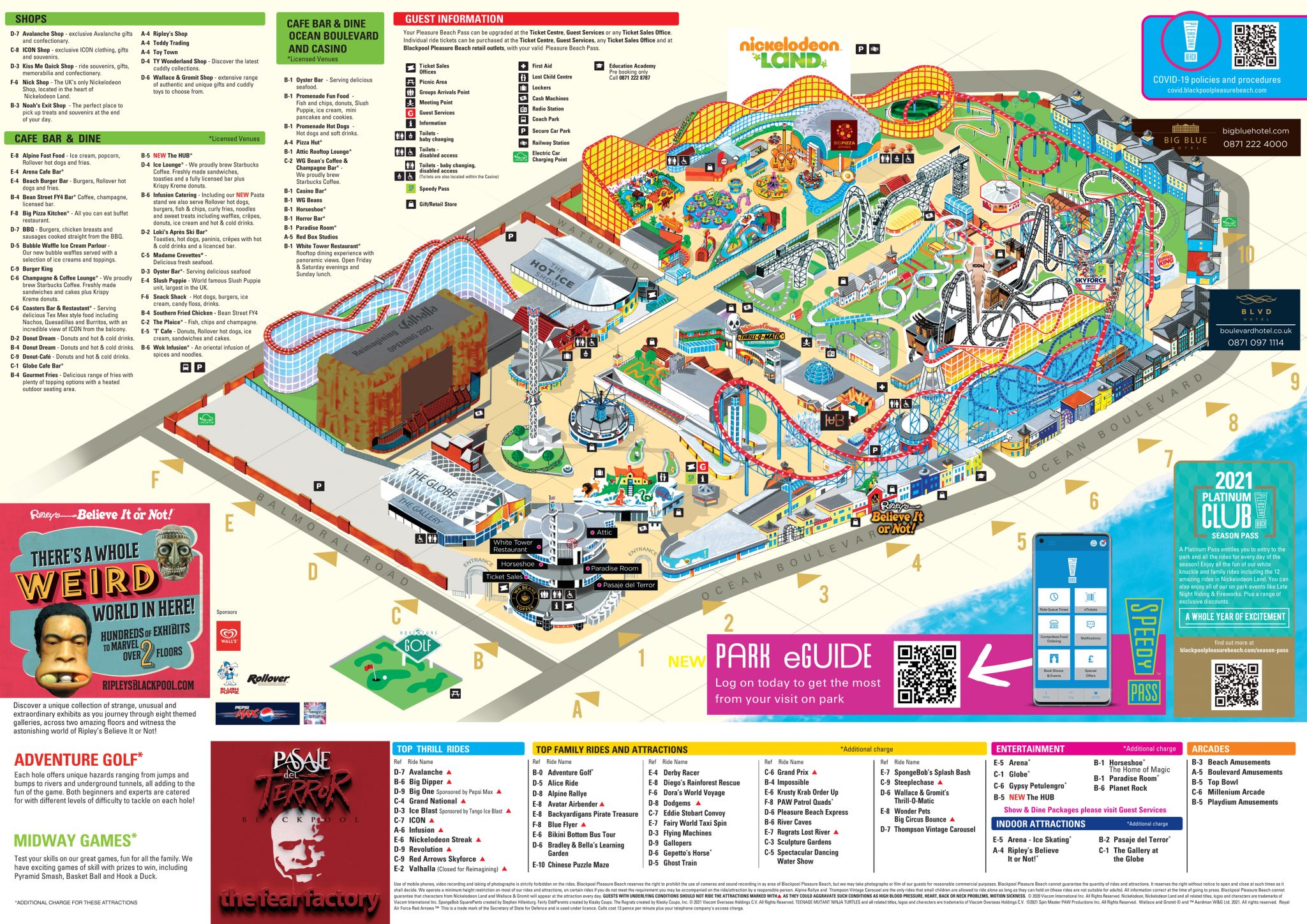 The official Blackpool Pleasure Beach park map is updated seasonally. The map at the top of this page shows the current layout with all rides and facilities marked.